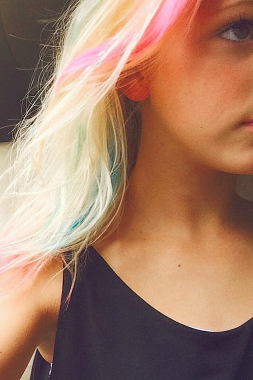 Jordyn Jones Straight Platinum Blonde Messy, Rainbow Hairstyle Steal Her Style